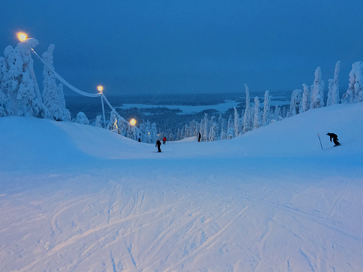 De uitvalsbasis voor de korte winterweek is Rukatunturi (afgekort tot Ruka), een klein wintersportoord op ongeveer 30 kilometer van de luchthaven van Kuusamo. Ruka bevat een aantal restaurants, een kleine supermarkt en meerdere hotels en appartementen. Maar belangrijker, het beschikt over 29 skipistes. Omdat het tijdens de wintermaanden slechts een paar uur licht is (in januari tussen 10.00 en 14.30 uur), wordt het overgrote deel van de pistes verlicht. Daardoor hoeven de pistes niet zoals in de Alpen al rond 16.00 uur dicht, maar sluiten ze pas om 23.00 uur. Een bijzondere ervaring, skiën met kunstlicht. En in welk land zie je onderweg rendieren langs de piste?